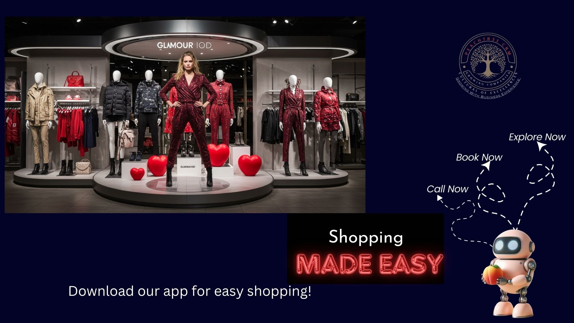 focuses on creating unique and tailored designs specifically for retail environments. It emphasizes the importance of aesthetic appeal and functionality in attracting customers and enhancing their shopping experience.